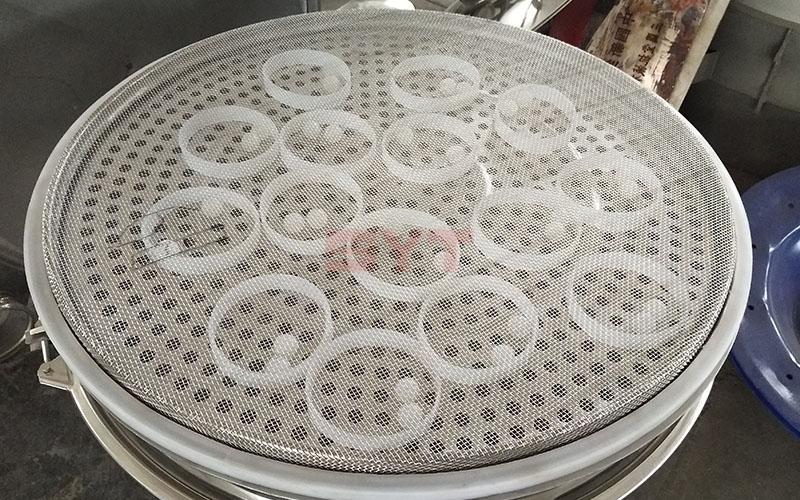 篩蓋由進料口及斜錐組成,其下端與篩框相接,篩蓋和篩框由卡環聯接,在篩蓋和篩框之間有密封墊。篩框由鋼板卷焊而成,其上下端均有一承接圈,下內部設有一法蘭圈,用於固定篩網組件等結構。