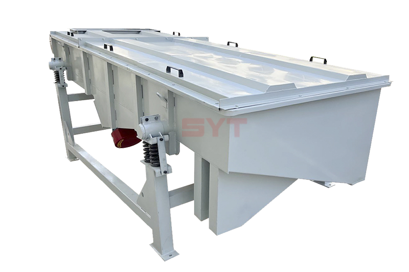 直線篩主要由篩箱、篩框、篩網、振動電機、電機台座、減振彈簧、支架等組成。
