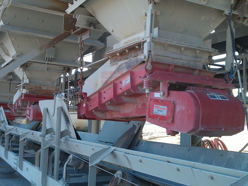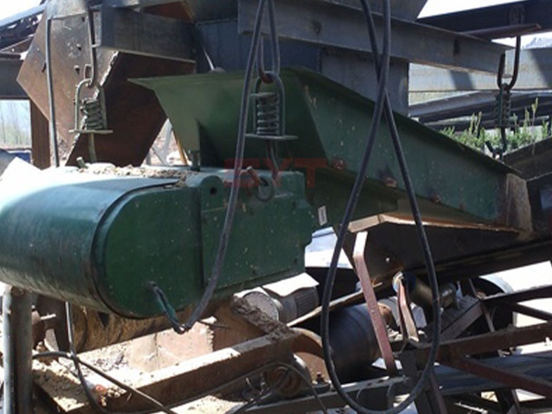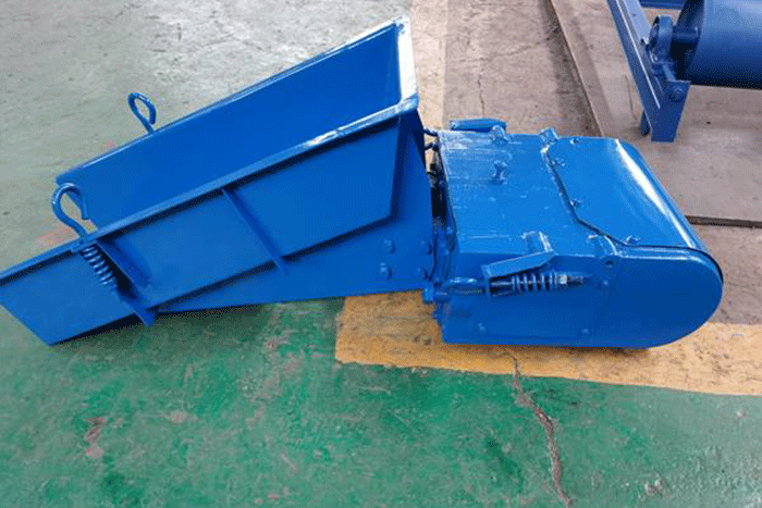 根據設備性能要求,配置設計時應盡量減少物料對槽體的壓力,按製造廠要求,倉料的有效排口不得大於槽寬的四分之一,物料的流動速度控製在6-18m/min.對給料量較大的物料,料倉底部排料處 應設置足夠高度的攔礦板; 為不影響給料機的性能,攔礦板不得固定在槽體上.