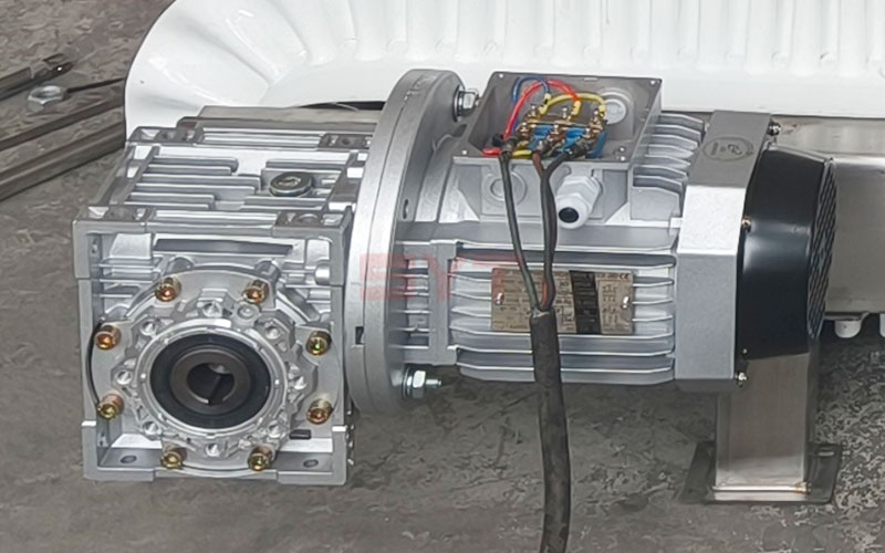 驅動滾筒由電動機通過減速器驅動,輸送帶依靠驅動滾筒與輸送帶之間的摩擦力拖動。驅動滾筒一般都裝在卸料端,以增大牽引力,有利於拖動。物料由喂料端喂入,落在轉動的輸送帶上,依靠輸送帶摩擦帶動運送到卸料端卸出。