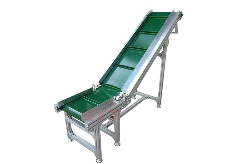 結構形式多樣,有槽形膠帶輸送機、平型帶式輸送機、爬坡皮帶式輸送機、側傾皮帶輸送機、轉彎皮帶輸輸機等多種形式,輸送帶上還可增設推板、側擋板、裙邊等附件,能滿足各種工藝要求。
